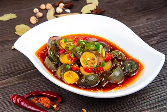 即剝除松花蛋外附的泥料,看其外殼,以蛋殼完整,呈灰白色、無黑斑者為上品;如果是裂紋蛋,在加工過程中往往有可能滲入過多的堿,從而影響蛋白的風(fēng)味,同時細菌也可能從裂縫處侵入,使松花蛋變質(zhì)。